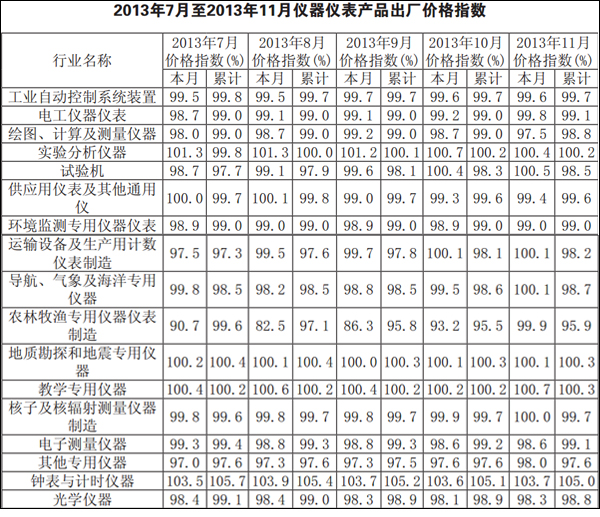 上海儀器儀表行業(yè)協(xié)會目前公布了2013年11月儀器儀表產品出廠價格指數。
