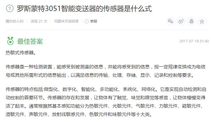 羅斯蒙特3051智能變送器的傳感器是什么式